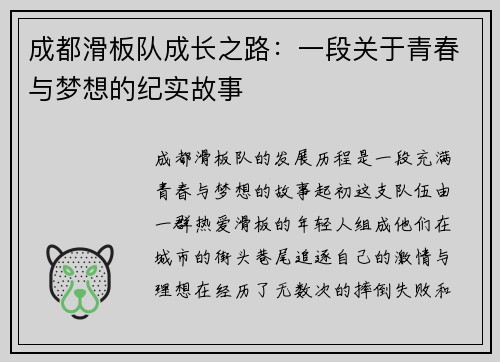 武汉滑板队作为城市文化的代表,近年来在滑板运动中展现了独特的节奏与风格。本文将从四个方面探讨武汉滑板队如何在文化碰撞中推动滑板运动的发展:首先,分析武汉滑板队的起源和发展背景;其次,探讨滑板文化在武汉的传播与影响;然后,评估城市环境对滑板运动发展的支持与挑战;最后,展望未来的发展方向和潜力。通过这些角度,我们能够更全面地理解武汉滑板队在当代社会中的重要性以及它们所带来的文化热潮。 1、武汉滑板队...